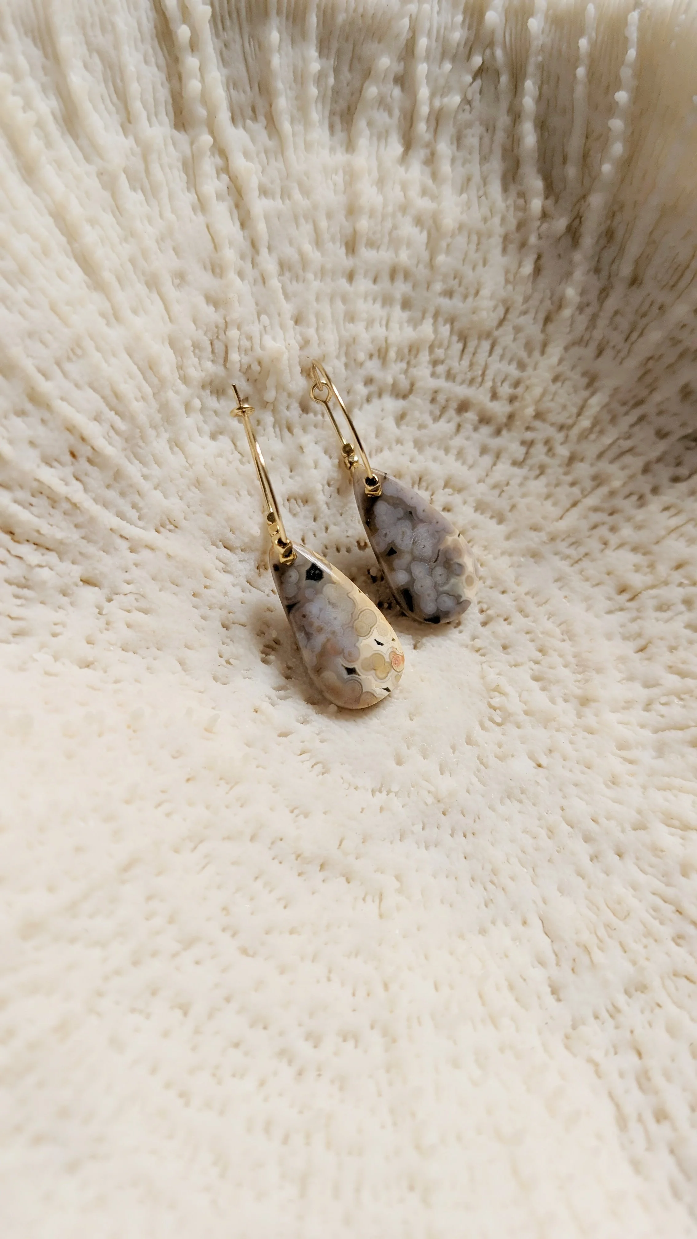 Paire de créoles en jaspe océan